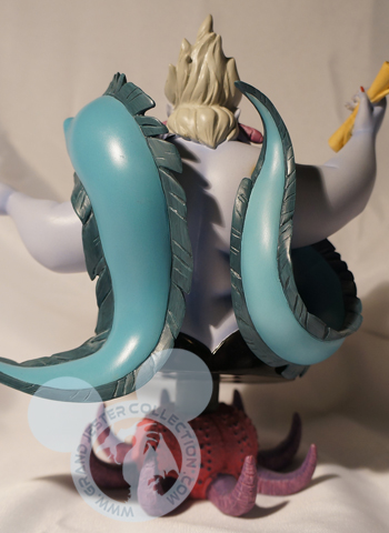 Poor, unfortunate souls, beware! Ursula the Sea Witch is on the prowl. Aided and abetted by her slippery sidekicks, Flotsam and Jetsam, the scheming Sea Witch is captured in all her voluminous glory in this character authentic, polystone mini-bust designed and art directed by Disney animator/sculptor Ruben Procopio.