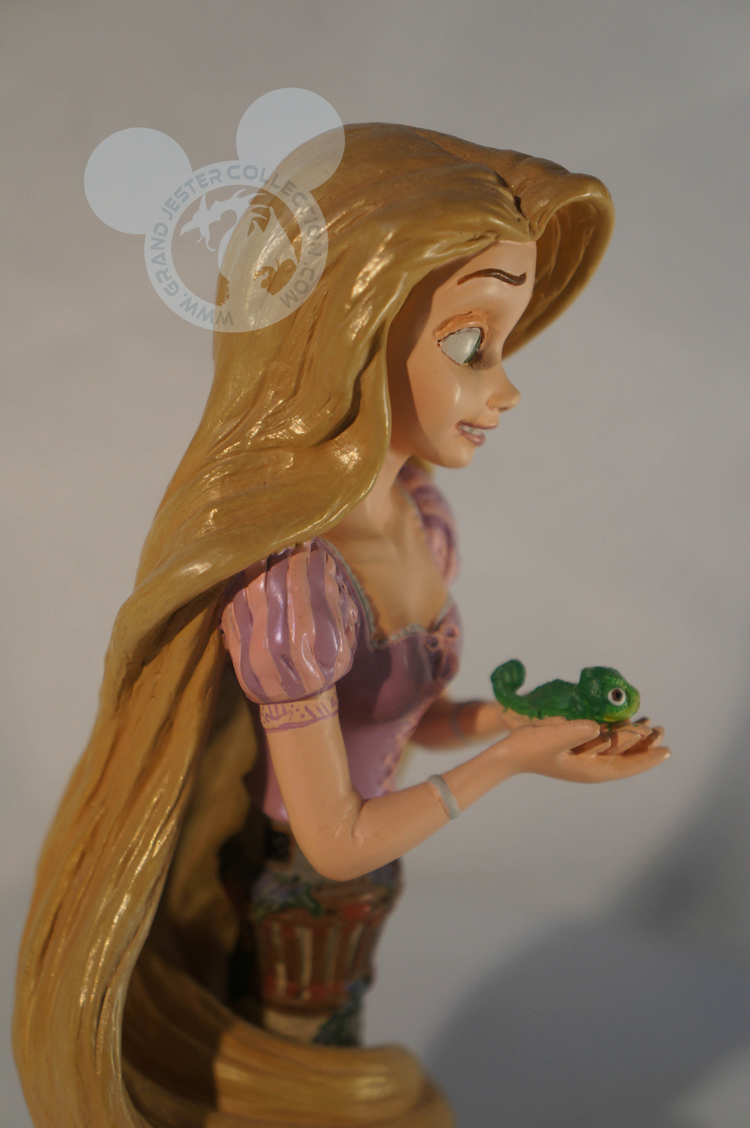 Secreted away atop an isolated tower deep in a hidden vale, Rapunzel shares her lonely existence with best friend and confidante Pascal the chameleon. Forbidden to cut a single lock of her golden hair, the captive princess bountiful tresses grow to prodigious length with each turning of the season.